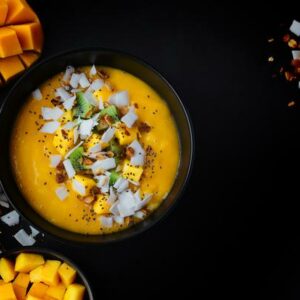 - Na hora de servir, você pode decorar com pedaços de manga ou folhinhas de hortelã.