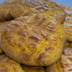 - Modele bolinhas achatadas, coloque em uma forma untada e passe um ovo batido por cima.