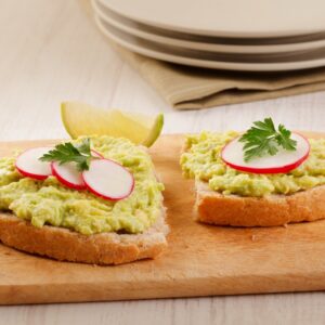 - Coloque a guacamole sobre as fatias de pão já regadas com azeite.
