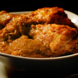 - Acrescente na panela, as coxas, a noz-moscada, a azeitona, o alecrim, a salsa, a cebolinha, o suco de limão e a água.