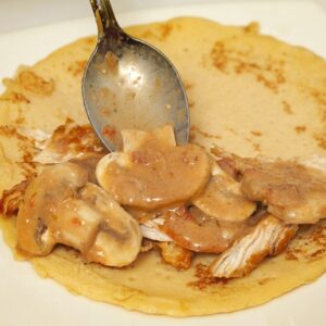 - Frite os crepes dos dois lados em uma frigideira antiaderente ou pincelada com óleo.