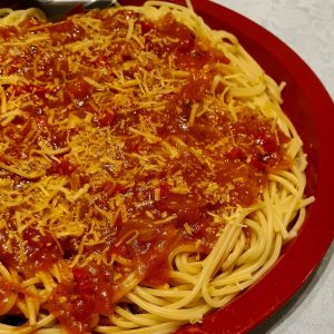 Pode-se finalizar o macarrão com mais temperos de sua preferência, como manjericão e orégano.