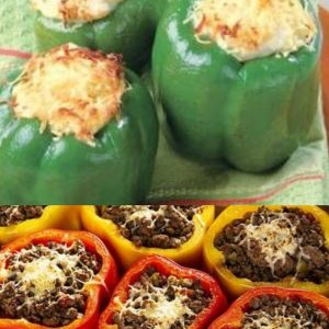 - Recheie os pimentões com a carne.