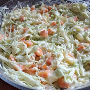 Essa receita de salada de repolho cremosa é perfeita para o almoço de domingo. Elá é perfeita e tem seu preparo super rápido levando em torno de 10 minutos apenas. Essa salada de repolho é um sucesso e eu tenho certeza que a sua família irá adorar!