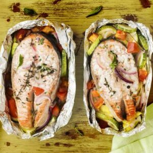 - Retire o papel alumínio e deixe o peixe assar por mais 10 minutos.