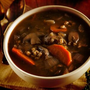 - Junte, na mesma panela, os tomates, a cebola, a salsa, o endro, a cevada, o sal e a pimenta.