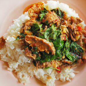 - Junte na panela com a cebola, o manjericão, a pimenta, a cebolinha, o sal, e o alho poró.