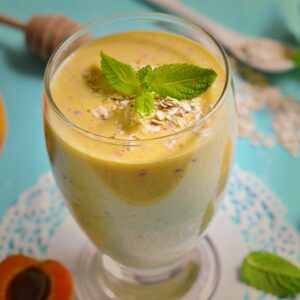 • CheckEm um liquidificador bata o damasco, a banana, a água e o açúcar ou adoçante.