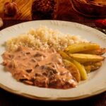 Carregando... Remover Salvar Salvar Carne bovina Estrogonofe com cogumelos Tempo 1h20m Porção 6 Porções