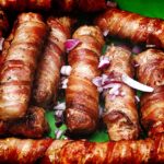 Carregando... Remover Salvar Salvar Carne suína Palitos de carne de porco com bacon Tempo 20m Porção 4