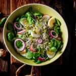 Carregando... Remover Salvar Salvar Entradas e Petiscos Salada de broto de feijão, rúcula, ovo de codorna e rabanete Tempo 20m Porção 4