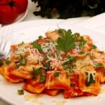 Carregando... Remover Salvar Salvar Pães e Salgados Ravioli com molho de tomate e coentro Tempo 30m Porção 2