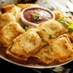 Carregando... Remover Salvar Salvar Entradas e Petiscos Ravioli frito com molho de pimenta-rosa Tempo 20m Porção 4 Porções