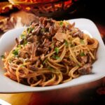 Carregando... Remover Salvar Salvar Carne bovina Macarrão com iscas de filet mignon e cogumelos Tempo 40m Porção 2 Porções