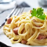 Carregando... Remover Salvar Salvar Carne suína Espaguete ao molho branco com presunto Tempo 40m Porção 2 Porções