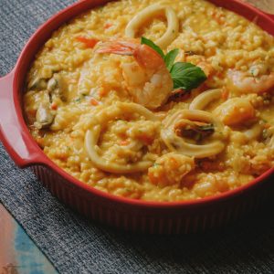 Carregando... Remover Salvar Salvar Frutos do Mar Paella com arroz de risoto Tempo 1h Porção 4 Paella com arroz de risoto