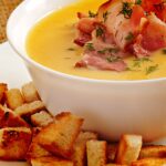 Carregando... Remover Salvar Salvar Carne suína Sopa de batata baroa e bacon Tempo 30m Porção 4 Porções